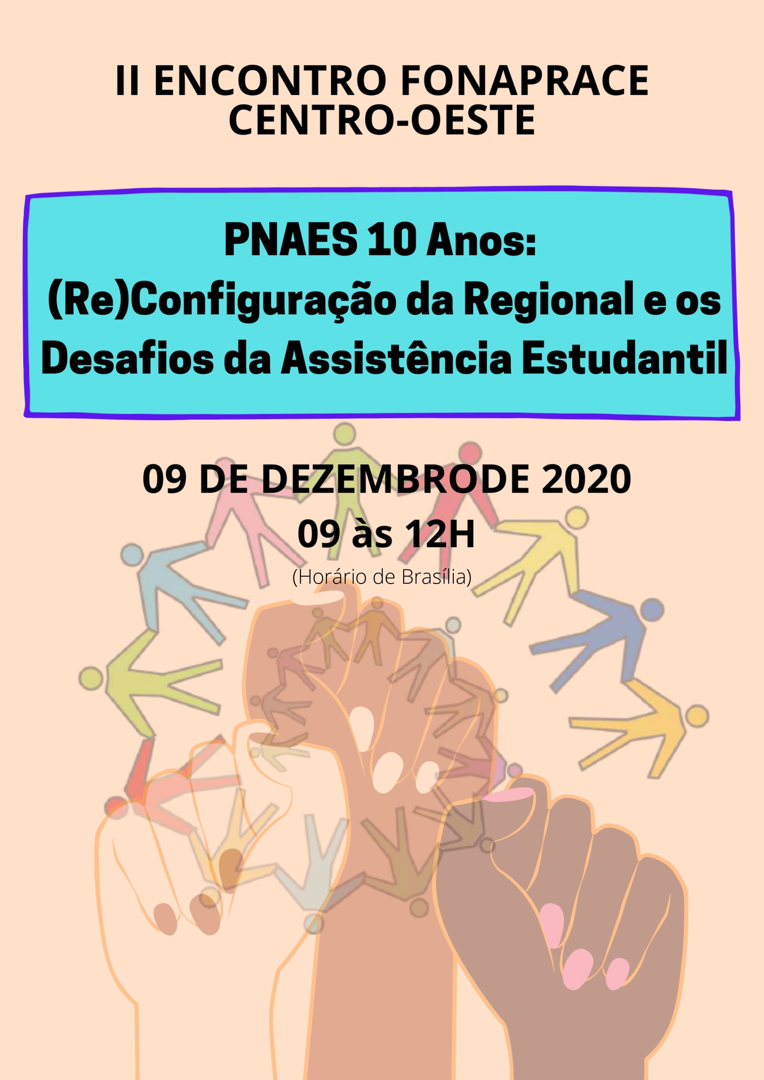 II ENCONTRO FONAPRACE CENTRO-OESTE Evento Local: . Data do Evento : 09 de Dezembro 2020 - 9h às 12h Listar Todas Voltar